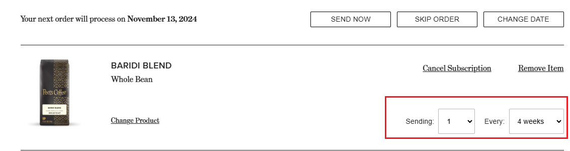 It's easy to adjust your subscription frequency for a standard (Frequent Brewer) subscription. Simply log in to your peets.com account and follow these steps:
